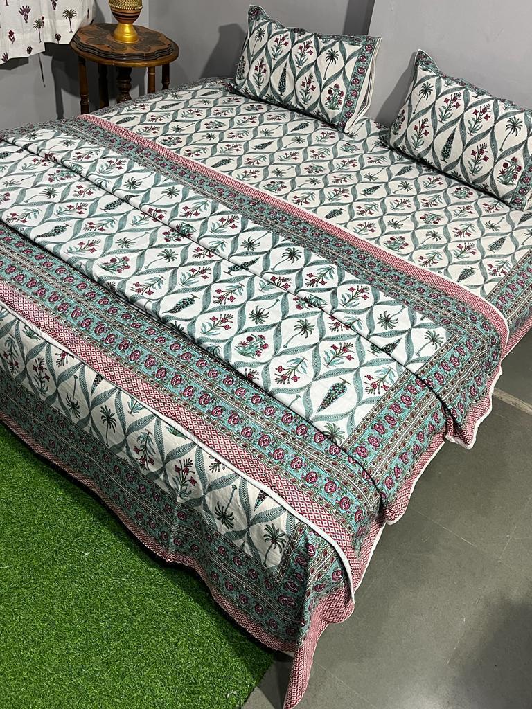 Aqua Green bloom Cotton Bedsheet & Dohar Combo Set
