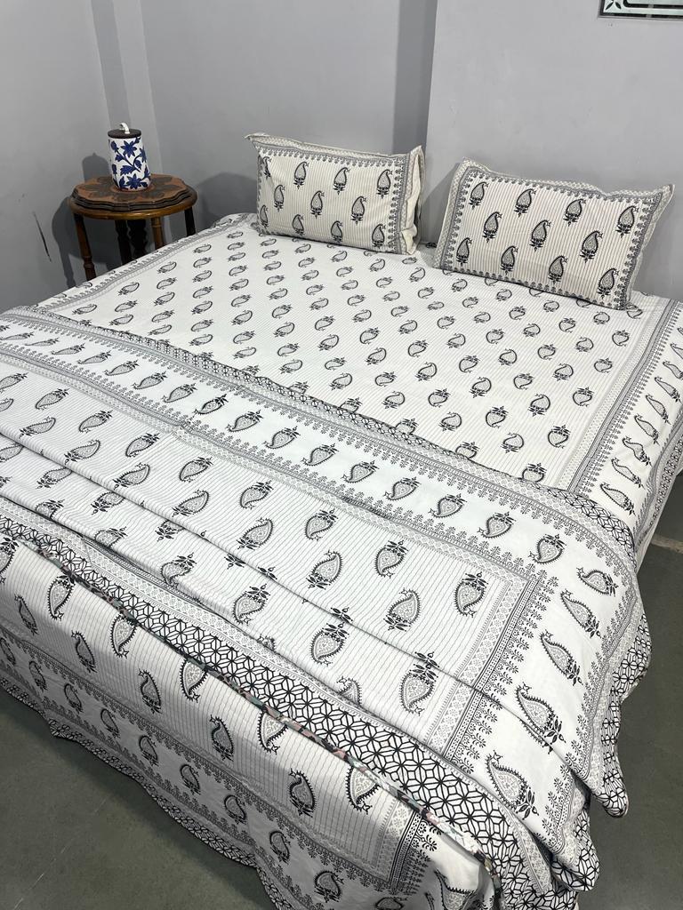 Black& White Bloom Cotton Bedsheet & Dohar Combo Set